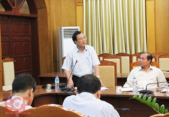 Ông Ngô Minh Đoàn - Phó Chủ tịch UBND huyện Lạng Giang thảo luận tại cuộc họp