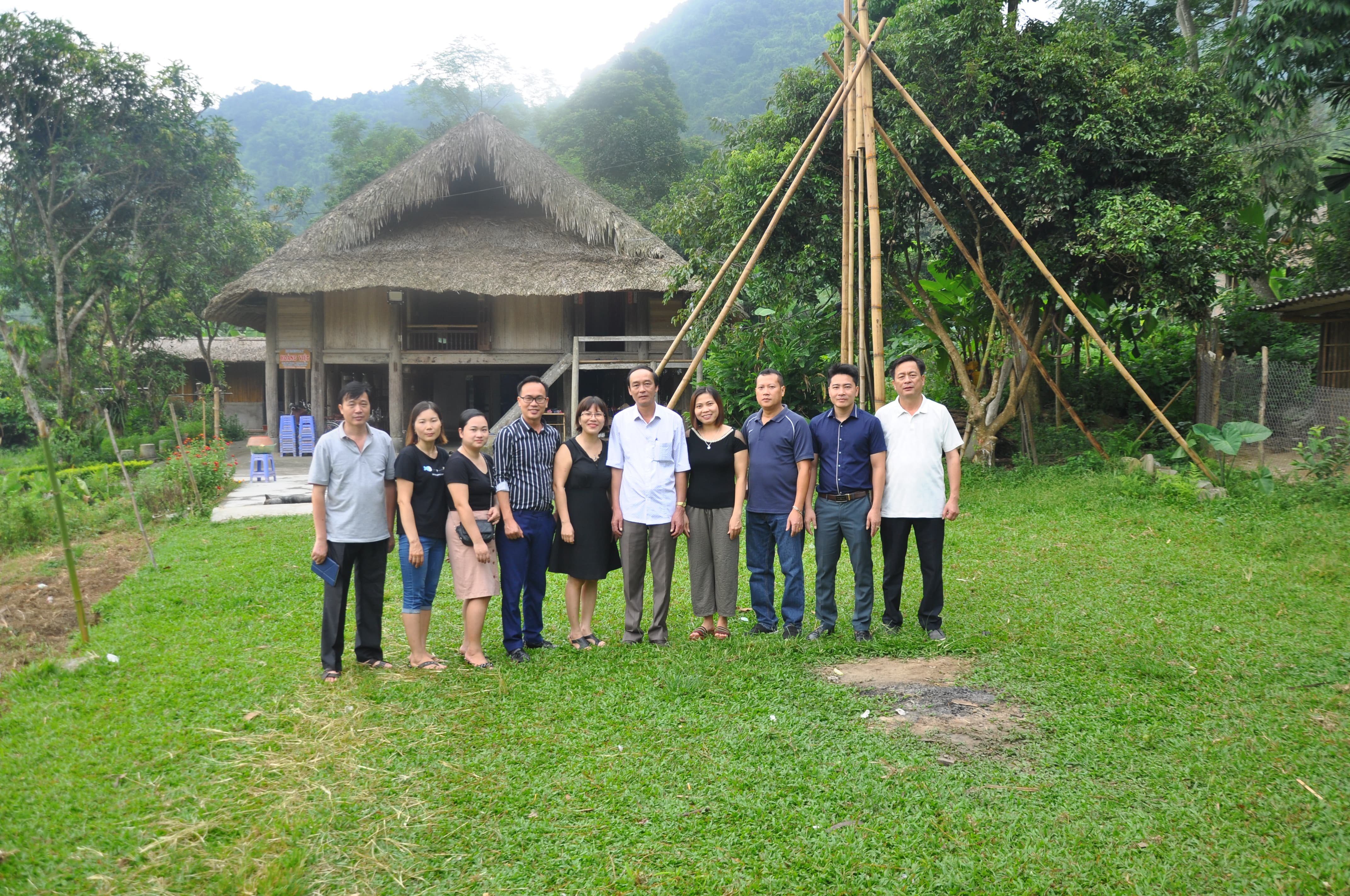 Lãnh đạo Sở VHTTDL và thành viên Trung tâm Thông tin và xúc tiến Du lịch chụp ảnh lưu niệm tại Homestay Nà Đông