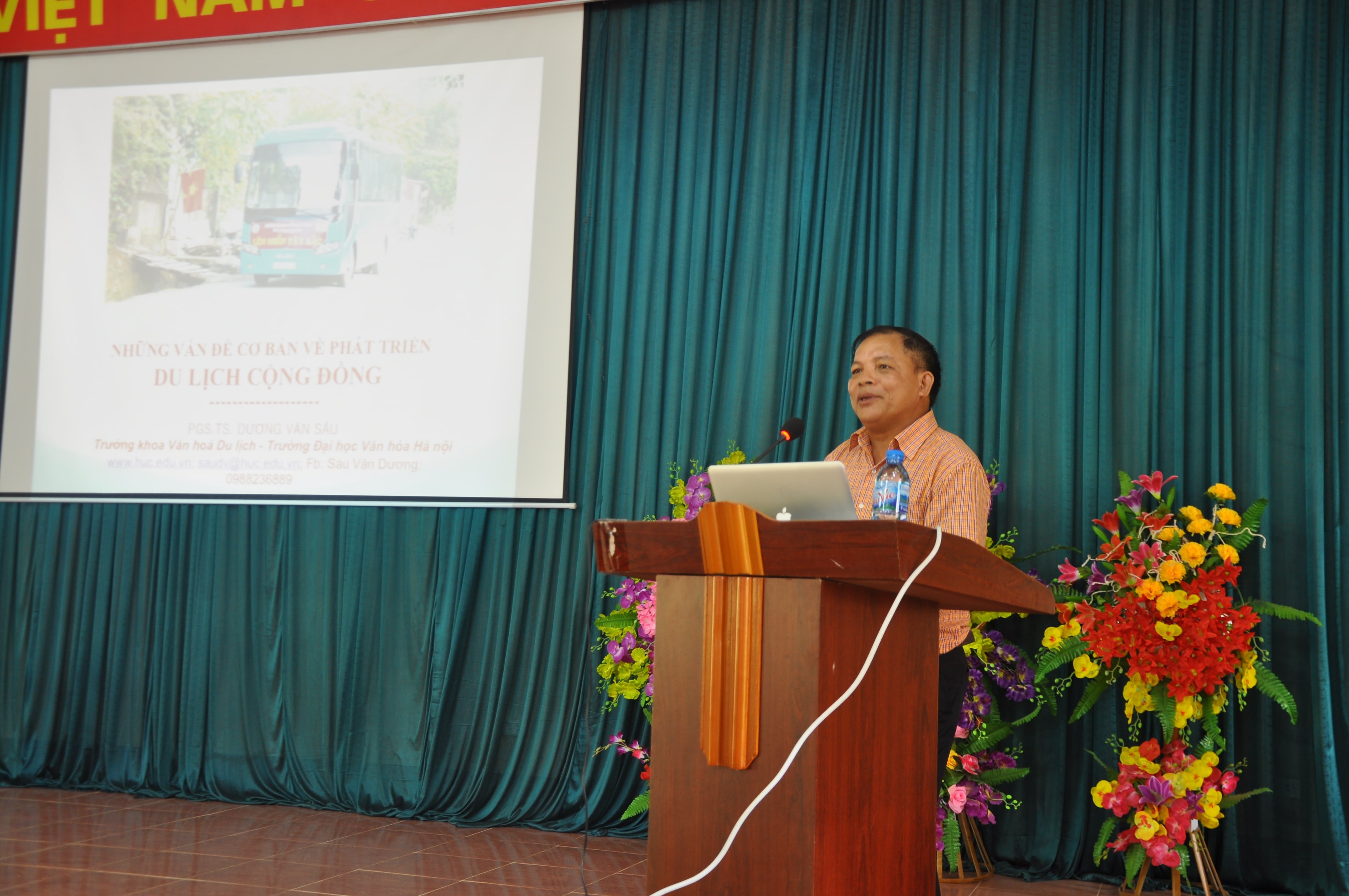PGS. TS Dương Văn Sáu - Trưởng khoa Du lịch đại học Văn Hóa tập huấn cho bà con làm du lịch cộng đồng