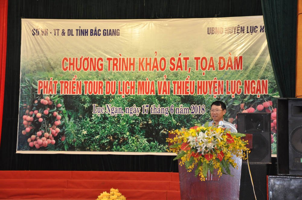 Ngày 17 tháng 6 năm 2017 Sở Văn hóa, Thể thao và Du lịch Bắc Giang đã phối hợp với UBND huyện Lục Ngạn đã tổ chức buổi khảo sát và tọa đàm phát triển tour du lịch vải thiều. Tham gia có đồng chí Lê Ánh Dương, Phó CTUBND tỉnh; đại diện Sở VHTTDL các tỉnh Hòa Bình; Bắc Kạn; Hải Dương; Vụ Lữ Hành; Hiệp hội Du lịch, Báo đài, trung ương và địa phương…