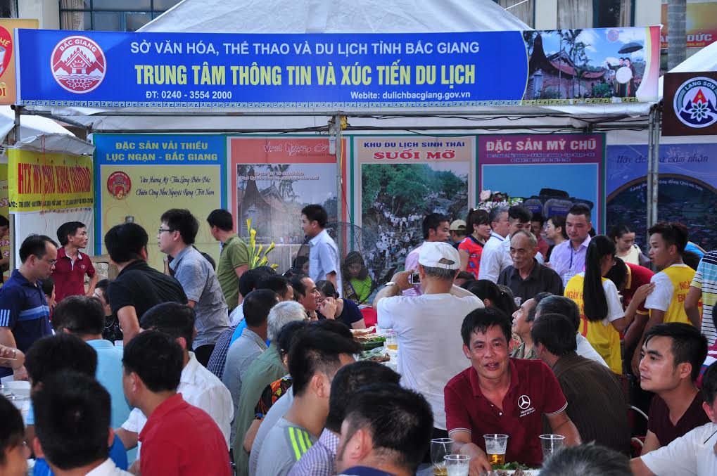 Đ/c Trần Minh Hà - Giám đốc Sở VH, TT & DL Bắc Giang chụp ảnh lưu niệm cùng Trung tâm tại gian hàng Chương trình phát triển du lịch “Qua những miền di sản Việt Bắc” và Lễ hội Thành Tuyên được tổ chức với nhiều hoạt động phong phú đa dạng như: Liên hoan văn hóa, văn nghệ dân gian với những tiết mục văn nghệ đặc sắc, mang đậm bản sắc văn hóa dân tộc mỗi vùng miền, do các nghệ nhân, diễn viên quần chúng của 6 tỉnh trong vùng là: Hà Giang, Tuyên Quang, Cao Bằng. Bắc Kạn, Thái Nguyên, Lạng Sơn biểu diễn. Cùng với các tỉnh, Bắc Giang tham gia Chương trình "Qua những miền di sản Việt Bắc" với 2 gian hàng quảng bá sản phẩm du lịch văn hoá ẩm thực trên địa bàn tỉnh để giới thiệu cho du khách và các nhà đầu tư như pano, ấn phẩm quảng bá hình ảnh đặc trưng của du lịch Bắc Giang như: Chùa Vĩnh Nghiêm, Suối Mỡ, Khuôn Thần, Những địa điểm khởi nghĩa Yên Thế... Sản phẩm làng nghề như bánh đa Kế, Rượu Làng Vân, Mỳ Chũ... Gian hàng quảng bá du lịch Bắc Giang với công tác trình bày đẹp, ấn tượng đã góp phần thu hút đông đảo du khách đến thăm quan.