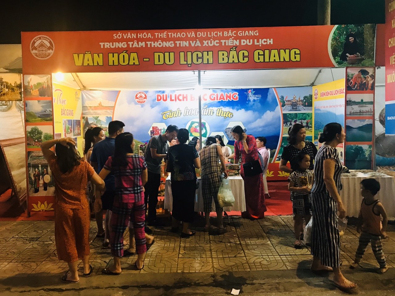 Tại Liên hoan Bắc Giang tham gia 3 gian hàng, được trang trí, trưng bày quảng bá nổi bật các làng nghề thủ công truyền thống và các hình ảnh khu điểm du lịch đặc trưng như: Bánh Đa Kế; rượu Làng Vân; Mỹ Chũ; Khu văn hóa tâm linh Tây Yên Tử; Khu du lịch sinh thái Suối Mỡ; Chùa Bổ Đà; chùa Vĩnh Nghiêm…Tại đây, Bắc Giang đã giới thiệu trực tiếp cho du khách thập phương tìm hiểu vùng đất con người Bắc Giang thông qua hệ thống ẩn phẩm như: Cẩm nang du lịch, tập gấp, bản đồ du lịch, sách, đĩa VCD. Đặc biệt tại gian hàng có sự tham gia, giới thiệu của các thành viên Hợp tác xã làng nghề Bánh đa Kế; Giấm Kim Ngân; Rượu Giáp Tửu. Với gian trưng bày quảng bá phong phú đa dạng, gian hàng Bắc Giang đã thu hút đông đảo du khách gần xa.