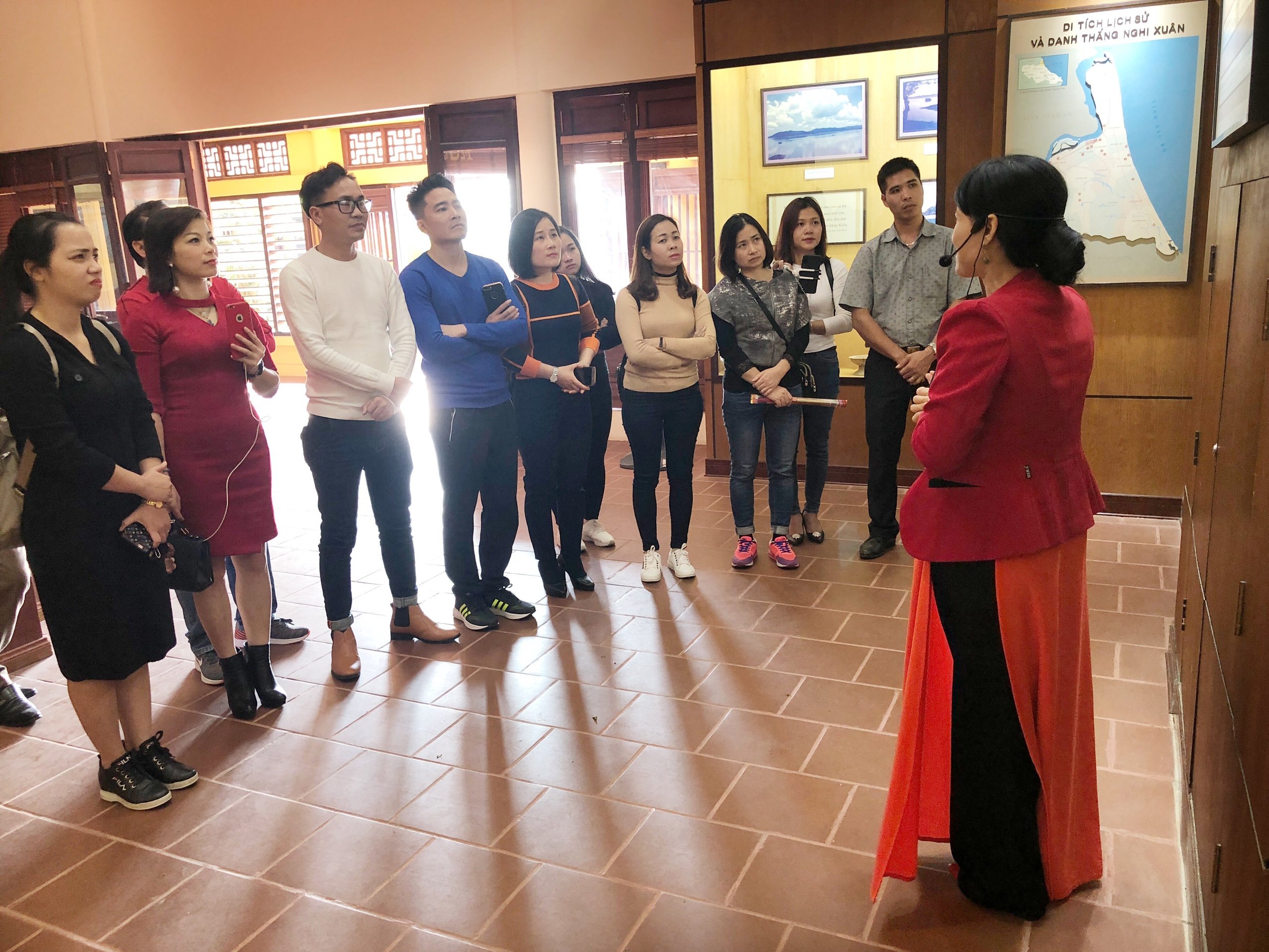 Đoàn tới khảo sát học tập và nghe thuyết minh viên giới thiệu tại Khu lưu niệm Đại thi hào Nguyễn Du tỉnh Hà Tĩnh Theo chương trình khảo sát học tập và trao đổi kinh nghiệm hướng dẫn, thuyết minh du lịch đoàn đã đến tại một số điểm du lịch nổi tiếng như: Khu Di tích lịch sử Ngã Ba Đồng Lộc, Khu lưu niệm Đại thi hào Nguyễn Du tại tỉnh Hà Tĩnh; Khu lưu niệm Chủ tịch Hồ Chí Minh (Khu di tích Kim Liên) gồm Cụm di tích Quê Nội làng Sen và Cụm di tích Quê Ngoại tại làng Hoàng Trù xã Kim Liên, huyện Nam Đàn tỉnh Nghệ An; Khu di tích lịch sử Lam Kinh tỉnh Thanh Hóa... Đây đều là những Khu di tích quốc gia đặc biệt hàng năm thu hút đông đảo du khách trong nước và quốc tế. Đặc biệt những khu, điểm du lịch này có một đội ngũ thuyết minh viên được đào tạo bài bản, chất lượng cao từ ngôn ngữ thể hiện, biểu cảm, trạng thái, trực quan, sinh động, xúc tích, lắng đọng… do vậy tạo nên sự ấn tượng cho mỗi du khách khi có dịp đến thăm.