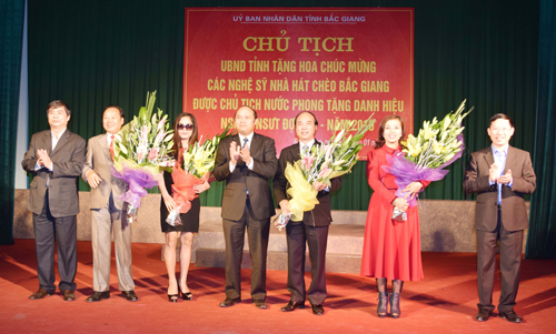 Trước đó, Chủ tịch nước có quyết định và trao tặng danh hiệu Nghệ sĩ Nhân dân cho 101 cá nhân và danh hiệu Nghệ sĩ Ưu tú cho 336 cá nhân. Theo đó, tỉnh Bắc Giang vinh dự được phong tặng 1 Nghệ sĩ Nhân dân là Trần Văn Thông - Giám đốc Nhà hát Chèo Bắc Giang; các Nghệ sĩ Ưu tú gồm: Phạm Thị Mai, Nguyễn Thị Hường (Nhà hát Chèo Bắc Giang), Nguyễn Văn Tân (Chi hội Nghệ sĩ sân khấu Việt Nam tỉnh Bắc Giang).