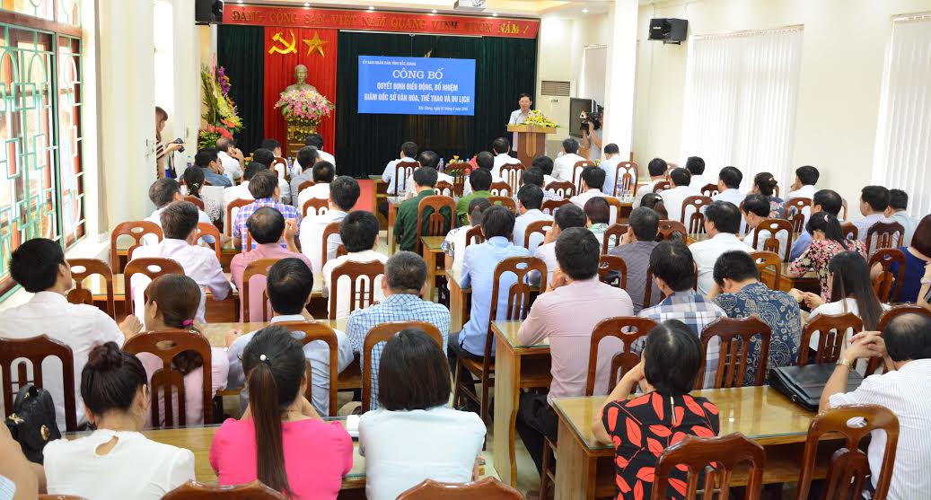 Sáng ngày 1/8/2016, UBND tỉnh Bắc Giang tổ chức buổi Công bố Quyết định điều động, bổ nhiệm Giám đốc Sở VHTTDL Bắc Giang. Tham dự có đồng chí Lê Ánh Dương, Phó Chủ tịch UBND tỉnh; lãnh đạo Ban tổ chức Tỉnh ủy, Văn phòng UBND tỉnh, Sở Nội vụ; lãnh đạo Thành ủy, HĐND, UBND thành phố Bắc Giang; lãnh đạo và toàn thể CBCC cơ quan Sở VHTTDL; lãnh đạo các phòng, đơn vị trực thuộc Sở VHTTDL.
