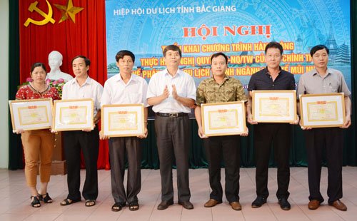 Hội nghị cũng đã thông qua Báo cáo kết quả công tác Hiệp hội Du lịch năm 2015 – 2016, triển khai nhiệm vụ năm 2017 – 2018. Trong năm 2015 – 2017, Hiệp hội đã triển khai có hiệu quả công tác quảng bá, xúc tiến đầu tư xây dựng sản phẩm du lịch với việc tham gia các Hội chợ, Hội nghị, Hội thảo về du lịch có quy mô trong nước và quốc tế; các doanh nghiệp đã tích cực phối hợp phát hành ấn phẩm quảng bá du lịch Bắc Giang tại các sự kiện du lịch tiêu biểu trong nước. Cùng đó, Hiệp hội luôn làm tốt công tác gắn kết giữa cơ quan quản lý nhà nước về du lịch (Sở VHTTDL) với hội viên của Hiệp hội, giúp hội viên tham gia đầy đủ các Lớp tập huấn nghiệp vụ du lịch; Ban chấp hành Hiệp hội luôn tích cực tham gia các hoạt động liên kết phát triển du lịch, ký kết hợp tác phát triển du lịch với các tỉnh bạn …, xây dựng môi trường kinh doanh du lịch có chất lượng, đáp ứng ngày càng cao nhu cầu phục vụ khách du lịch.Tại Hội nghị, các hội viên cũng đã có nhiều ý kiến thảo luận nhằm nâng cao chất lượng hoạt động của tổ chức hội, đông thời có những đề xuất, kiến nghị về những khó khăn, bất cập cần được khắc phục trong thời gian tới.Nhân dịp này, Hội nghị đã tiến hành bầu bổ sung 06 thành viên mới tham gia Ban chấp hành Hiệp hội; lãnh đạo Hiệp hội đã trao tặng Giấy khen cho 07 cá nhân có thành tích xuất sắc trong công tác hội năm 2015 – 2016. Phí Trường Giang