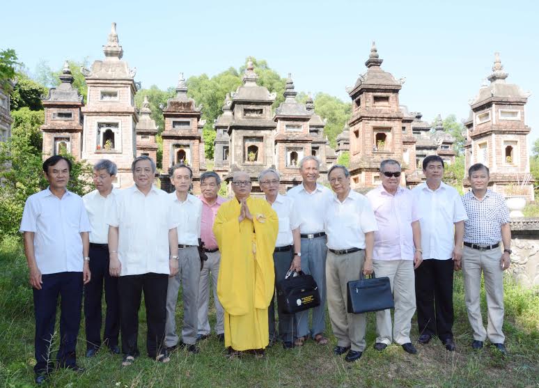 Các đại biểu chụp ảnh lưu niệm tại Vườn tháp chùa Bổ Đà Chùa Bổ Đà là một danh lam cổ tự nổi tiếng của vùng Kinh Bắc xưa, nơi đào luyện tăng đồ theo Thiền phái Lâm Tế. Tương truyền, chùa Bổ Đà có từ thời Lý, được tu bổ, tôn tạo và trở thành nổi tiếng vào thời vua Lê Dụ Tông, niên hiệu Bảo Thái (1720-1729). Chùa Bổ Đà được coi là một danh lam cổ tự với nhiều hạng mục công trình lớn nhỏ, trong đó có 05 hạng mục chính: Chùa Cao, Am Tam Đức, Chùa Tứ Ân, Vườn Tháp và Ao Miếu. Điểm đáng chú ý, chùa Bổ Đà còn bảo lưu nhiều giá trị độc đáo, quý hiếm, tiêu biểu như nét kiến trúc cổ độc đáo, là nơi lưu giữ kho mộc bản kinh vô cùng quý giá với số lượng 1.935 bản, được san khắc trên gỗ thị từ năm 1740 và nhiều đời cao tăng sau này, phản ánh triết lý sâu sắc của Phật giáo nói chung và dòng Thiền phái Lâm Tế nói riêng; hay các di vật, cổ vật quý, tiêu biểu là hệ thống tượng thờ bằng gỗ với hơn 40 pho … Đặc biệt, Vườn Tháp chùa Bổ Đà là một trong những Vườn Tháp đẹp và lớn nhất Việt Nam với 110 ngôi tháp và mộ lớn nhỏ khác nhau.