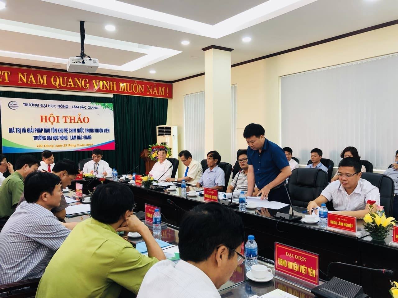 Nhằm bảo tồn và phát triển bền vững khu hệ chim nước trong khuôn viên trường, sáng ngày 23/8/2018, trường Đại học Nông lâm Bắc Giang đã tổ chức hội thảo giá trị và các giải pháp bảo tồn khu hệ chim nước cư trú trong khuôn viên trường.