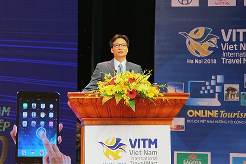 Phó Thủ tướng Vũ Đức Đam mong muốn Hội chợ VITM 2018 với chủ đề “Du lịch trưc tuyến –Du lịch Việt Nam hướng tới công nghiệp 4.0” sẽ tận dụng những lợi thế của công nghệ thông tin để tăng cường kết nối, phát triển thành công hơn nữa.