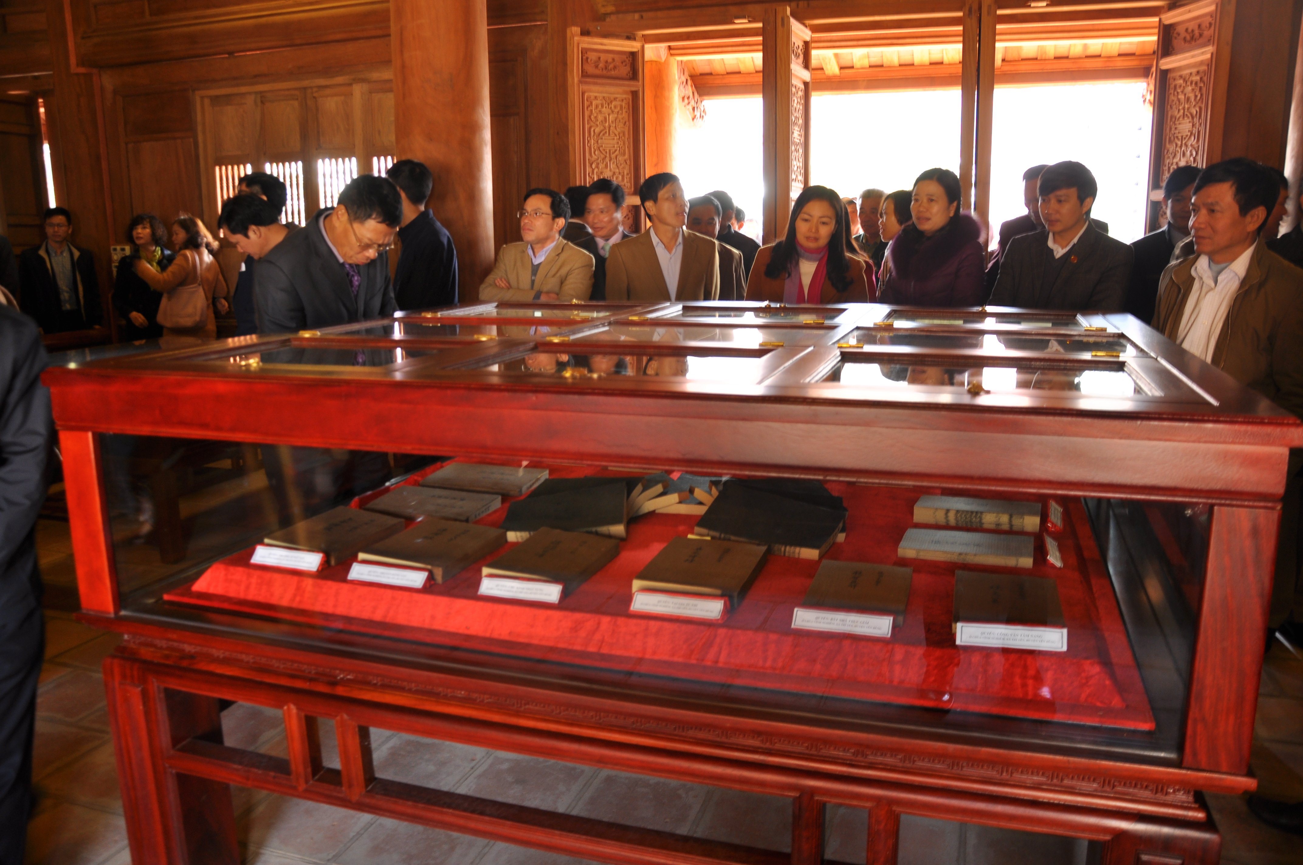 Du khách tham quan nhà lưu giữ mộc bản chùa Vĩnh Nghiêm. Ảnh: Văn Dương