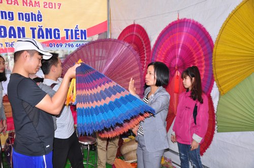 Gian hàng trưng bày sản phẩm mây tre đan Tăng Tiến Tại Lễ hội còn có hơn 20 gian hàng tham gia trưng bày, giới thiệu các sản phẩm làng nghề, đặc sản địa phương như: mây tre đan Tăng Tiến, rượu làng Vân, bánh đa Thổ Hà...Trung tâm Thông tin và Xúc tiến Du lịch đã có gian hàng quảng bá, xúc tiến du lịch tại ngày hội. Tại đây Trung tâm đã trưng bày các ấn phẩm: Cẩm nang, tập gấp, đĩa hình... giới thiệu về tài nguyên du lịch đặc sắc của tỉnh. Gian hàng của Trung tâm đã thu hút đông đảo khách tham quan, góp phần tạo nên sự phong phú cho lễ hội.
