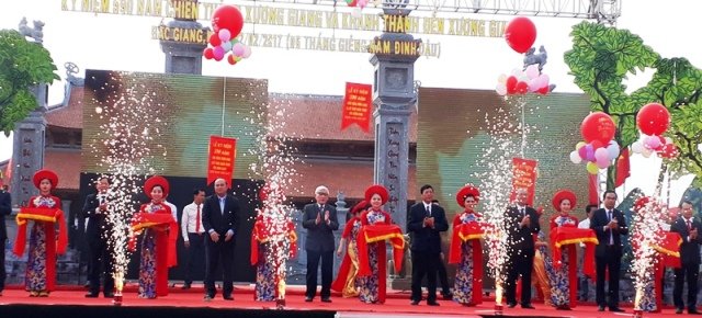 Không gian văn hóa chợ quê được tái hiện trong khu di tíchNhân dịp này, các đại biểu đã cắt băng khánh thành Đền Xương Giang. Đây là dự án bảo tồn, tôn tạo và phát huy giá trị Khu di tích lịch sử Chiến thắng Xương Giang với diện tích khoảng 10 ha do UBND thành phố Bắc Giang làm chủ đầu tư bao gồm các hạng mục: Đền thờ và các công trình phụ trợ, 01 cổng chính, 02 cổng phụ, tường rào bảo vệ, đường giao thông, hệ thống điện sinh hoạt, điện chiếu sáng, hệ thống cấp thoát nước, trồng cây xanh cảnh quan quanh khu vực, sân nền, bãi đỗ xe, nhà biểu diễn và trưng bày các tác phẩm nghệ thuật tại phía Tây trục dẫn lễ... Tổng mức đầu tư hơn 237 tỷ đồng. Đây là công trình văn hóa có ý nghĩa chính trị, lịch sử, mang đậm tính nhân văn./.