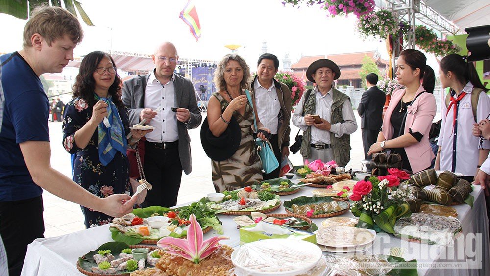 Du khách nước ngoài tham quan, thưởng thức các sản phẩm đặc trưng của TP Bắc Giang. Ảnh: Tiến Đạt.