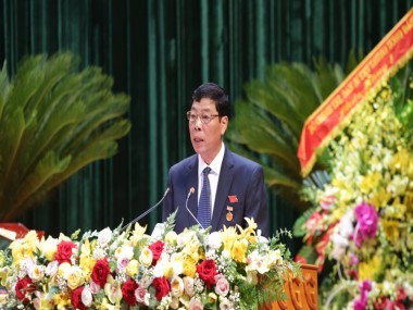 Bí thư Tỉnh ủy Bùi Văn Hải phát biểu khai mạc Đại hội Đảng bộ tỉnh lần thứ XIX