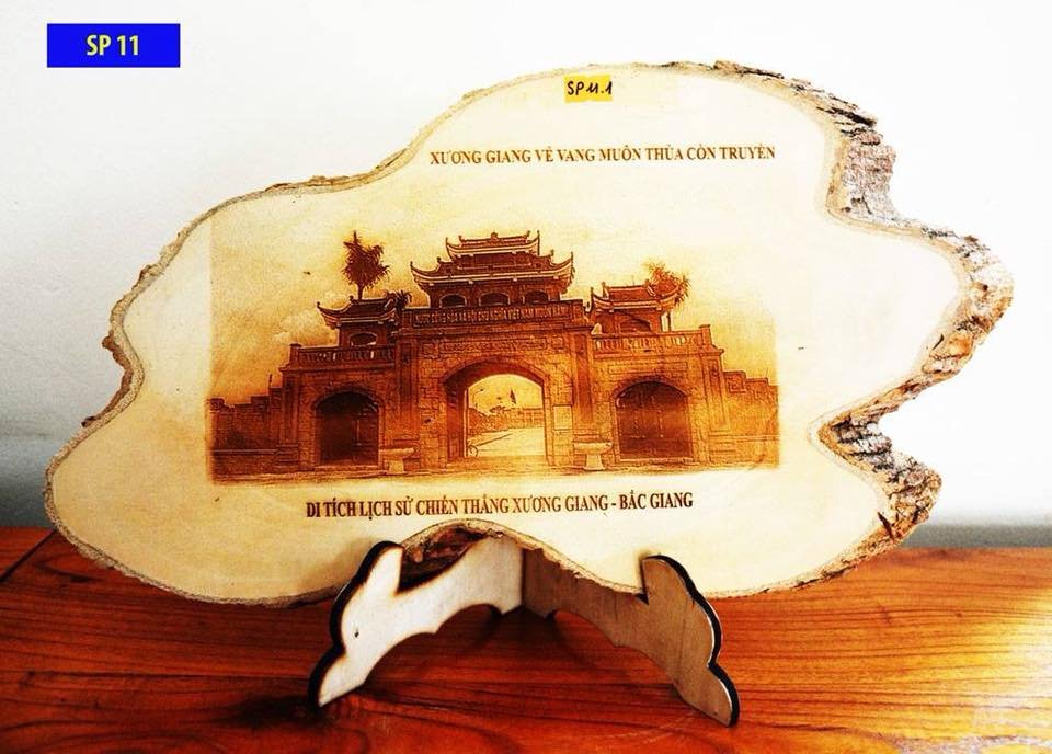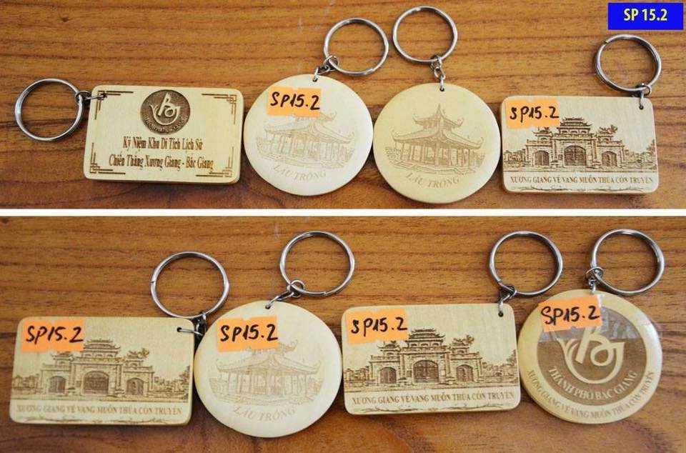 Tên gọi: MÓC TREO CHÌA KHÓAChất liệu sử dụng chính: Gỗ Mapel (Nhập khẩu tại Mỹ)Kích cỡ: 6cm x 4cmMàu sắc: Màu vàngThời gian chế tác: 03 phút/sản phẩmGiá thành ước tính: 20.000đ/ sản phẩmGiá trị sử dụng: Quà tặng, đồ lưu niệm, không bị ngấm nước độ bóng caoÝ tưởng sáng tác và ý nghĩa sản phẩm: Sản phẩm được thể hiện thông qua 2 mặt (trước – sau)Với những ý nghĩa tiêu biểu về Thành phố Bắc GiangMặt trước: Biểu tượng Logo thành phố Bắc Giang phía trên nền chữ “Kỷ niệm khu di tích lịch sử chiến thắng Xương Giang – Bắc Giang” với mong muốn gửi đến quý khách thăm quan, du lịch thông tin về địa điểm chiến thắng Xương Giang, nơi ghi dấu chiến thắng vẻ vang, oai hùng của quân dân Đại Việt vào thế kỷ XV truyền thống đó luôn được kế thừa và phát huy các thế hệ người Việt Nam sau nàyMặt sau sản phẩm: Cổng khu di tích Thành Xương Giang, công trình kiến trúc tâm linh đã được tỉnh và thành phố quan tâm đầu tư xây dựng và khánh thành vào đúng dịp kỷ niệm 590 năm chiến thắng Xương Giang.BẢN THUYẾT MINH SẢN PHẨM MÃ SỐ SP 17.2