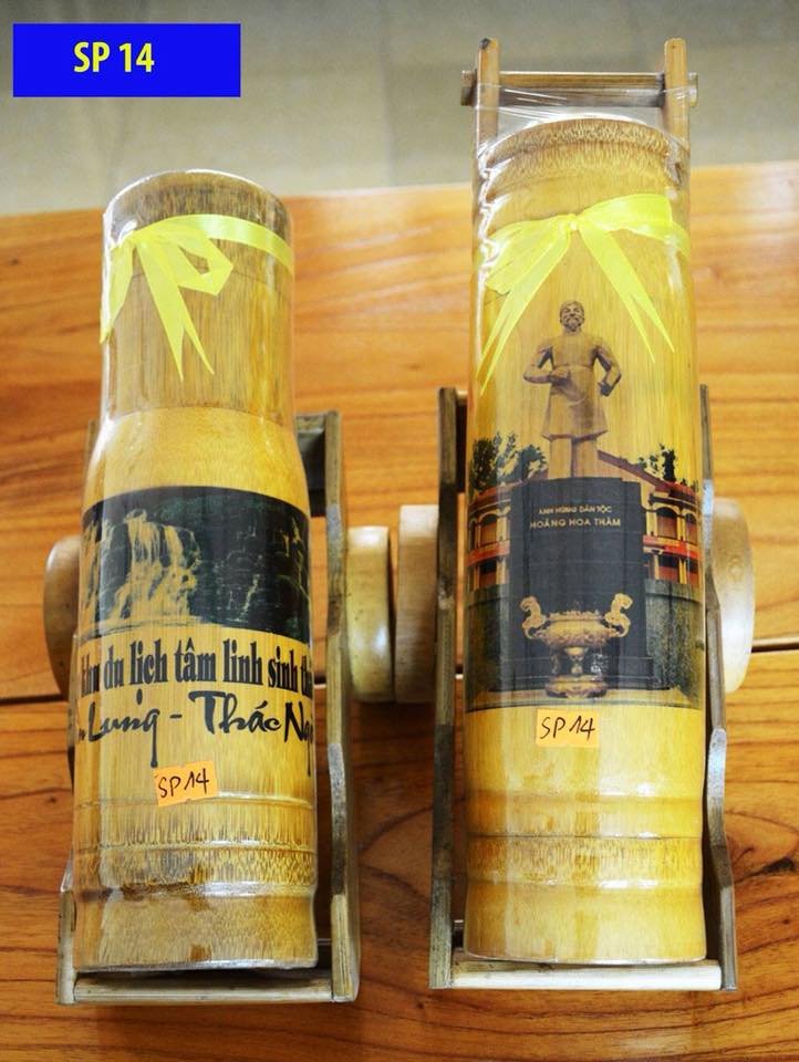 Tên gọi: BÌNH RƯỢU SƠN LÂM TỬU HOÀNG HOA THÁMChất liệu sử dụng chính: Vỏ được làm bằng thân cây tre tự nhiên, trên thân vỏ in hình khu du lịch Thác Ngà (Xuân Lương Yên Thế) và hình ảnh anh hùng dân tộc Hoàng Hoa Thám; bên trong vỏ có lõi nhựa để chứa rượu ngâm thảo mộc Kích cỡ: 650mlThời gian chế tác: 60 phút/ sản phẩm tính cả thời gian làm ra vỏ và đóng bao bì sản phẩmGiá thành ước tính: 150.000đ/ sản phẩmGiá trị sử dụng: Sử dụng để uống trong các bữa tiệc, các buổi giao lưu, hội nghị, để trang trí trong tủ rượu hoặc trang trí tại bàn uống nước, bàn tiếp khách, nơi làm việc… đồng thời quảng bá hình ảnh khu du lịch Thác Ngà xã Xuân Lương, huyện Yên Thế và hình ảnh khu di tích lịch sử Quốc gia đặc biệt Đền Thề, đồn Phồn Xương, anh hùng dân tộc Hoàng Hoa Thám Ý tưởng sáng tác và ý nghĩa sản phẩm: Nhằm phát triển kinh tế, tạo công ăn việc làm cho người lao động, tăng thu nhập cho người sản xuất; phục vụ bán cho du khách thăm quan du lịch đến với tỉnh Bắc Giang nói chung và đến với huyện Yên Thế nói riêng; đồng thời giới thiệu sản phẩm ẩm thực đặc trưng của người dân tộc thiểu số huyện Yên Thế đến với du khách thập phương đến thăm quan du lịch trong và ngoài tỉnhBẢN THUYẾT MINH SẢN PHẨM MÃ SỐ SP 15.2