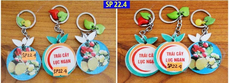 Tên gọi: MÓC TREO CHÌA KHÓAChất liệu sử dụng chính: Mê caKích cỡ: Đường kính rộng 4,5cmMàu sắc: Phối nhiều màu, chủ yếu là đỏ, xanh, vàngThời gian chế tác: 1 phút/ sản phẩmGiá thành ước tính: 10.000đ/ sản phẩmGiá trị sử dụng: Là sản phẩm lưu niệm, đeo các loại chìa khóaÝ tưởng sáng tác và ý nghĩa sản phẩm: huyện Lục Ngạn, tỉnh Bắc Giang được biết đến là vùng cây ăn quả đa dạng, bốn mùa cho trái ngọt, thơm ngon nổi tiếng của cả nước, là vùng cây ăn quả lớn nhất miền Bắc nước ta với trên 26.600 ha. Do đó việc thiết kế những chiếc móc treo chìa khóa với nhiều hình ảnh khác nhau về vùng cây ăn quả Lục Ngạn, Bắc Giang, vừa nhanh, tốn ít thời gian, chi phí thấp nên rất thông dụng, phù hợp với mọi du khách, đồng thời là biện pháp hữu hiệu để tuyên truyền, quảng bá về vùng đất và các sản phẩm đặc trưng của Lục Ngạn, Bắc Giang. Để bình chọn sản phẩm mời quý độc giả truy cập trang web: binhchon.bacgiang.gov.vn/