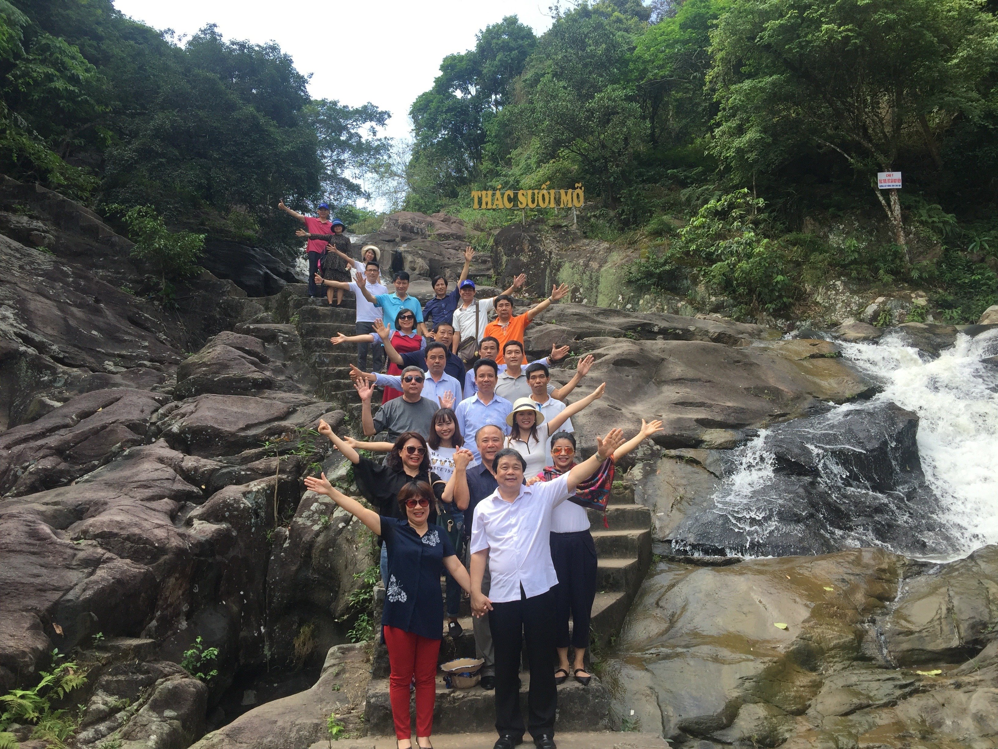 Đoàn khảo sát chụp ảnh lưu niệm tại Thác Suối Mỡ