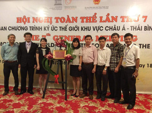 Thơ văn trên kiến trúc cung đình Huế và Mộc bản trường học Phúc Giang” (huyện Can Lộc, tỉnh Hà Tĩnh) được Ủy ban chương trình Ký ức Thế giới khu vực Châu Á – Thái Bình Dương chính thức công nhận là Di sản Tư liệu Thế giới chiều ngày 19/5.